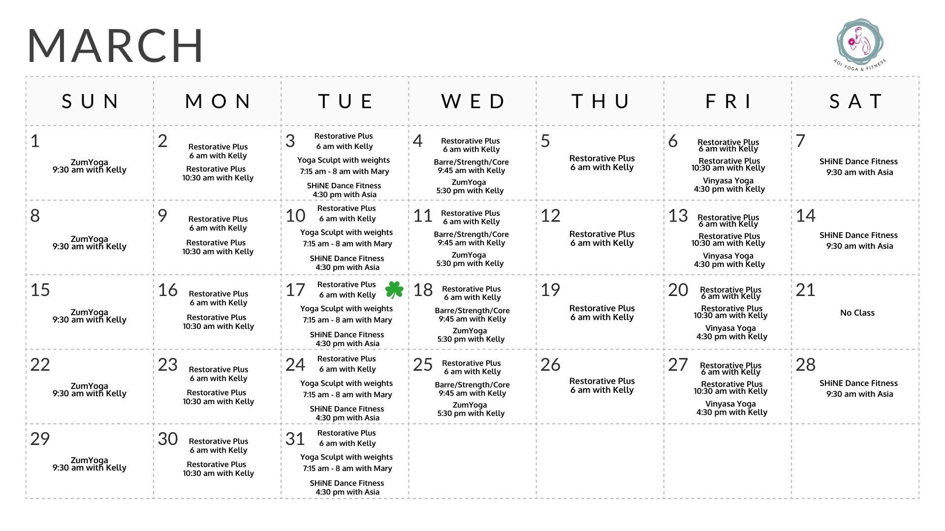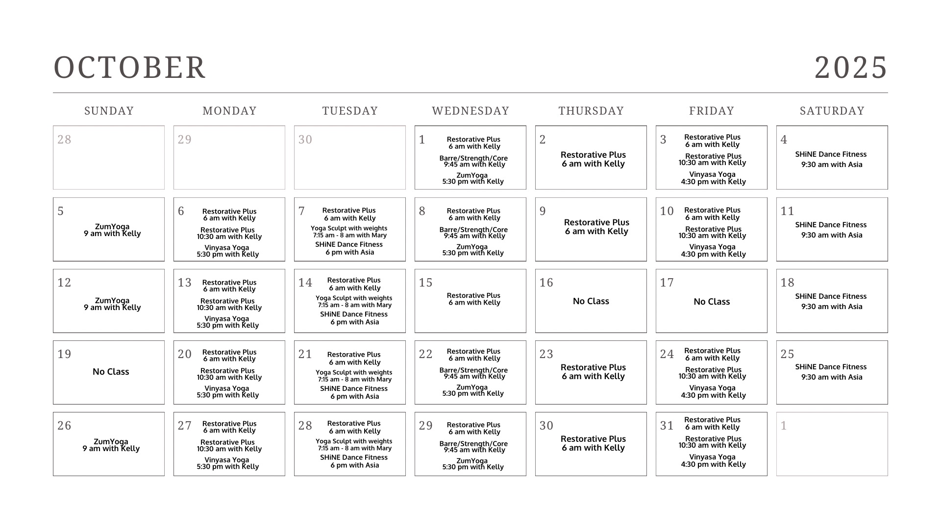 Zum-Yoga: A great combo of Zumba and Yoga! Burn calories with cardio and fun dance moves, then cool down with stretching and yoga.