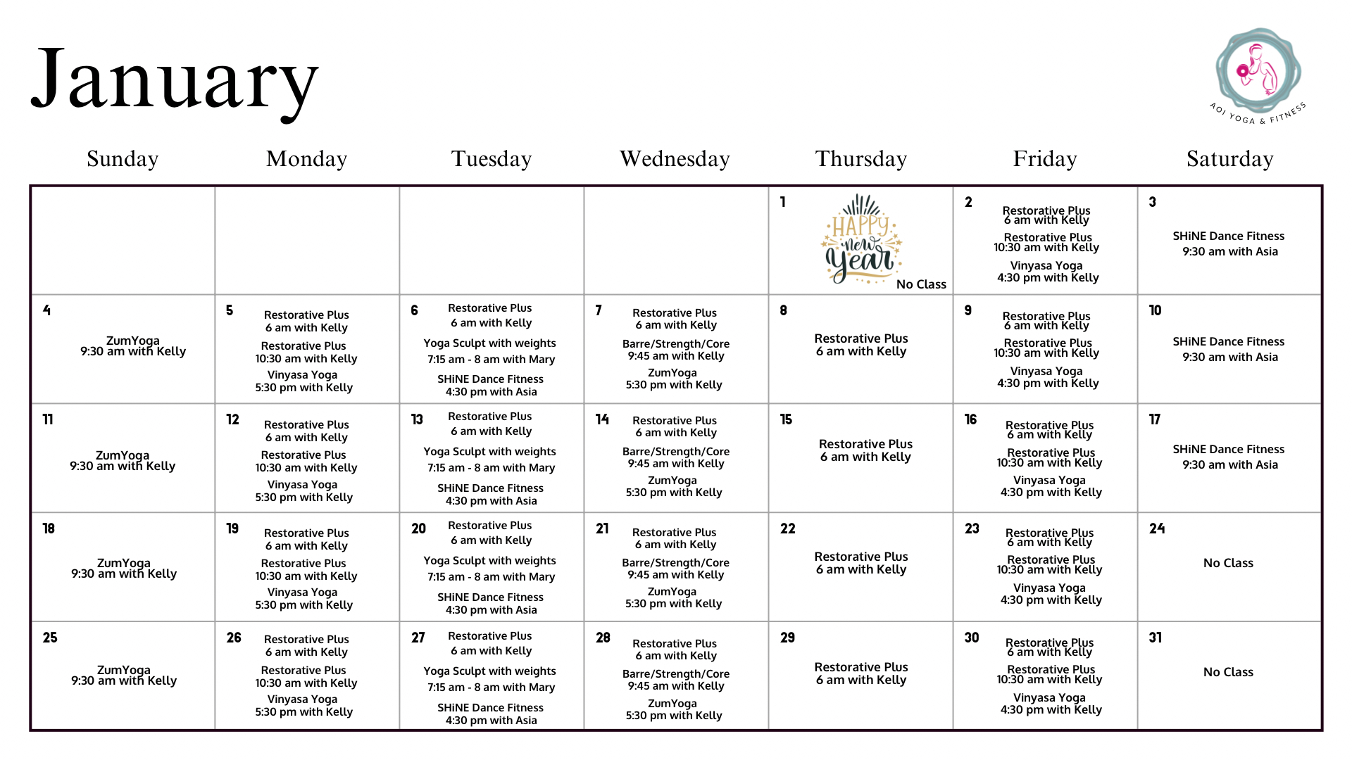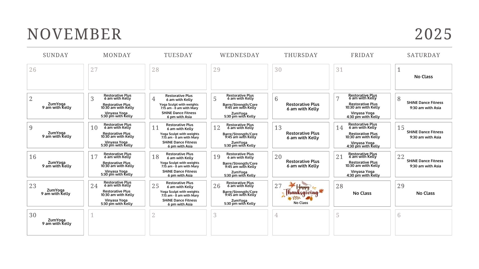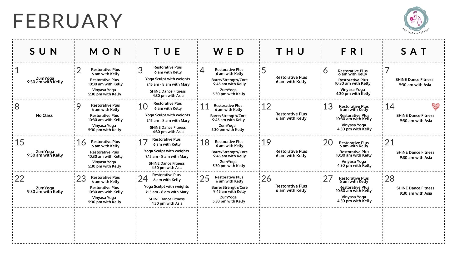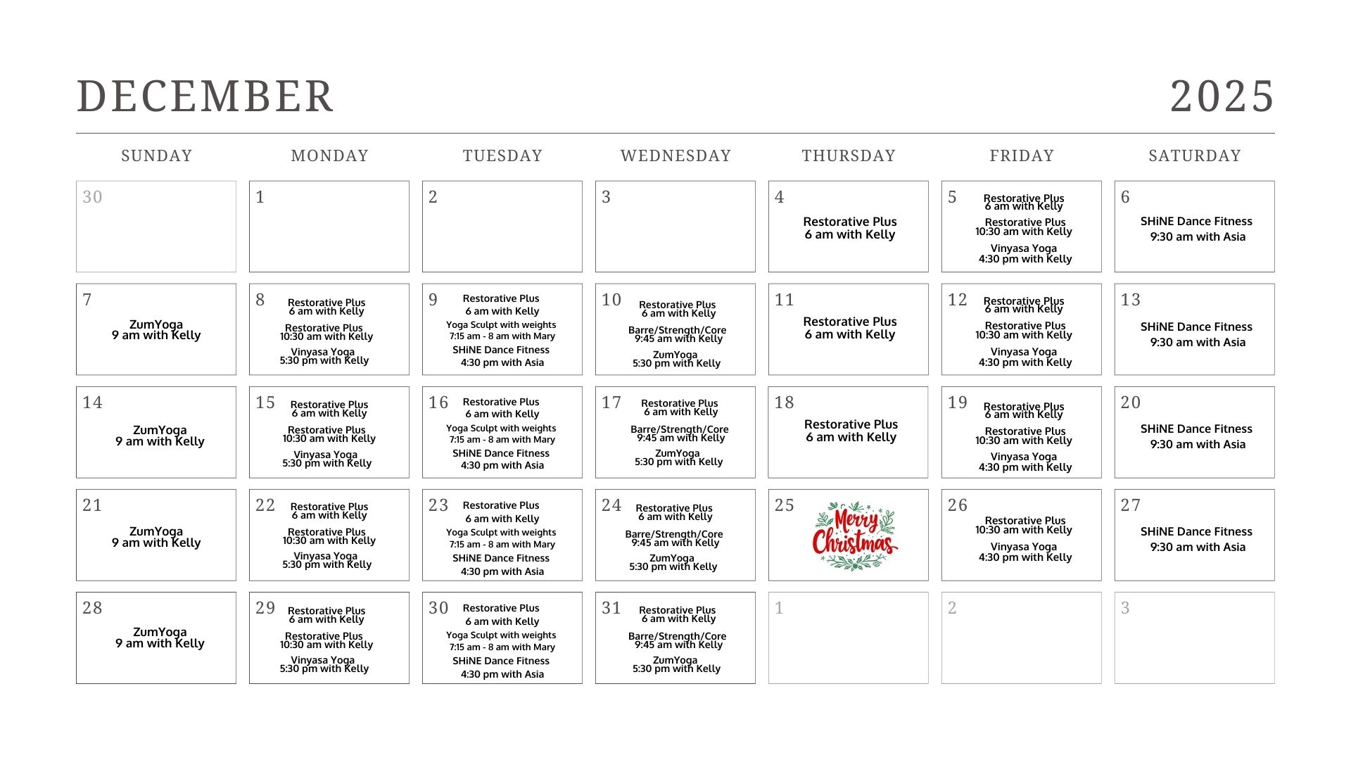 Zum-Yoga: A great combo of Zumba and Yoga! Burn calories with cardio and fun dance moves, then cool down with stretching and yoga.